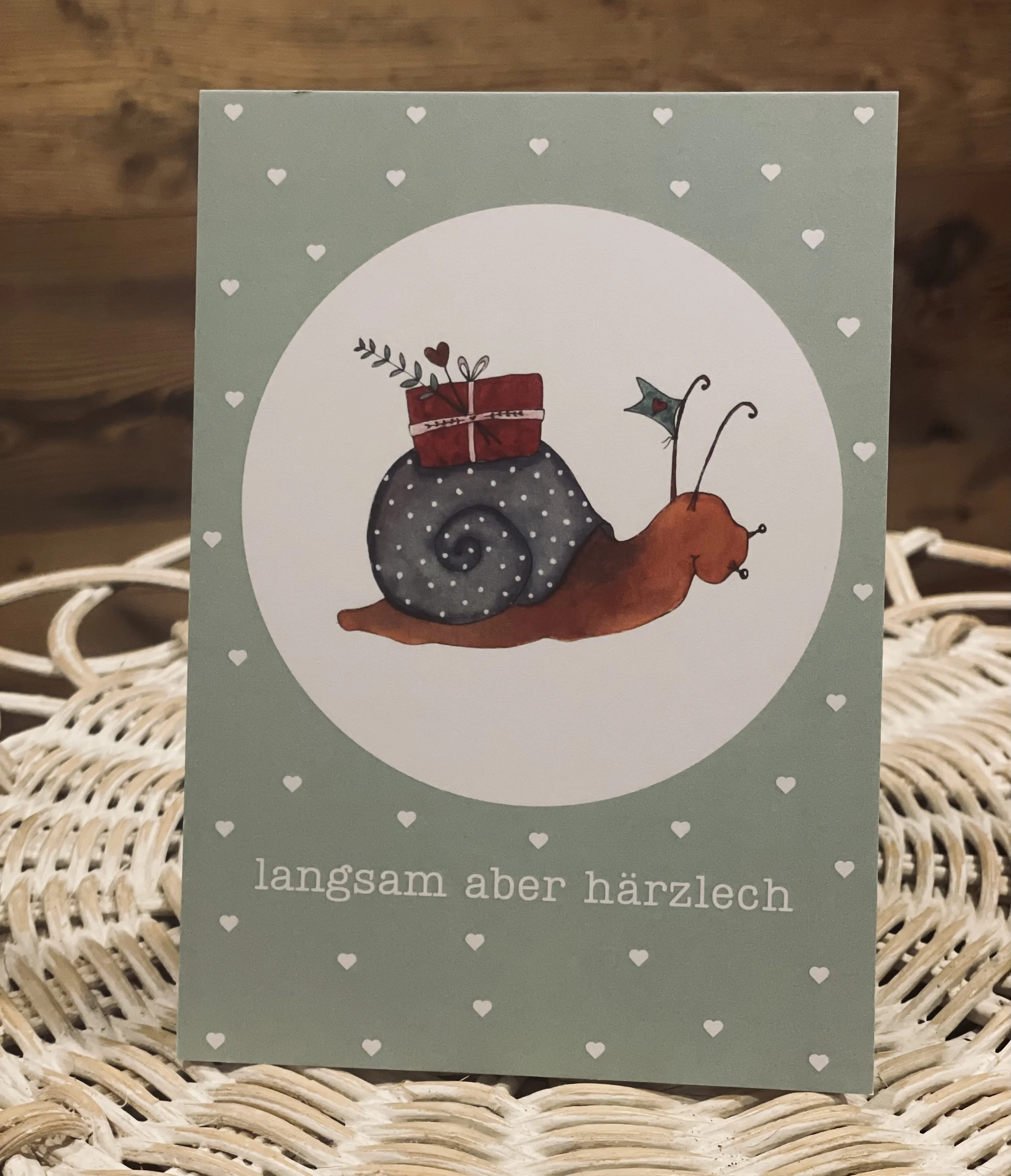 Postkarten sind so eine richtige Herzensangelegenheit. Es ist ein langer Prozess, viele Versuche mit Aquarell und noch viele mehr mit dem Gestaltungsprogramm, mit dem mich ehrlich eine Hassliebe verbindet. Doch sie sind da - bereit um in die Welt aufzubrechen und besondere Momente noch bedeutsamer zu machen. Jede Karte verbindet zarte Illustrationen, warme Farben und ein paar Herzensworte für besondere Menschen. Die Karten werden in der Region bei unsrer Druckerei Pauli in Meiringen gedruckt.